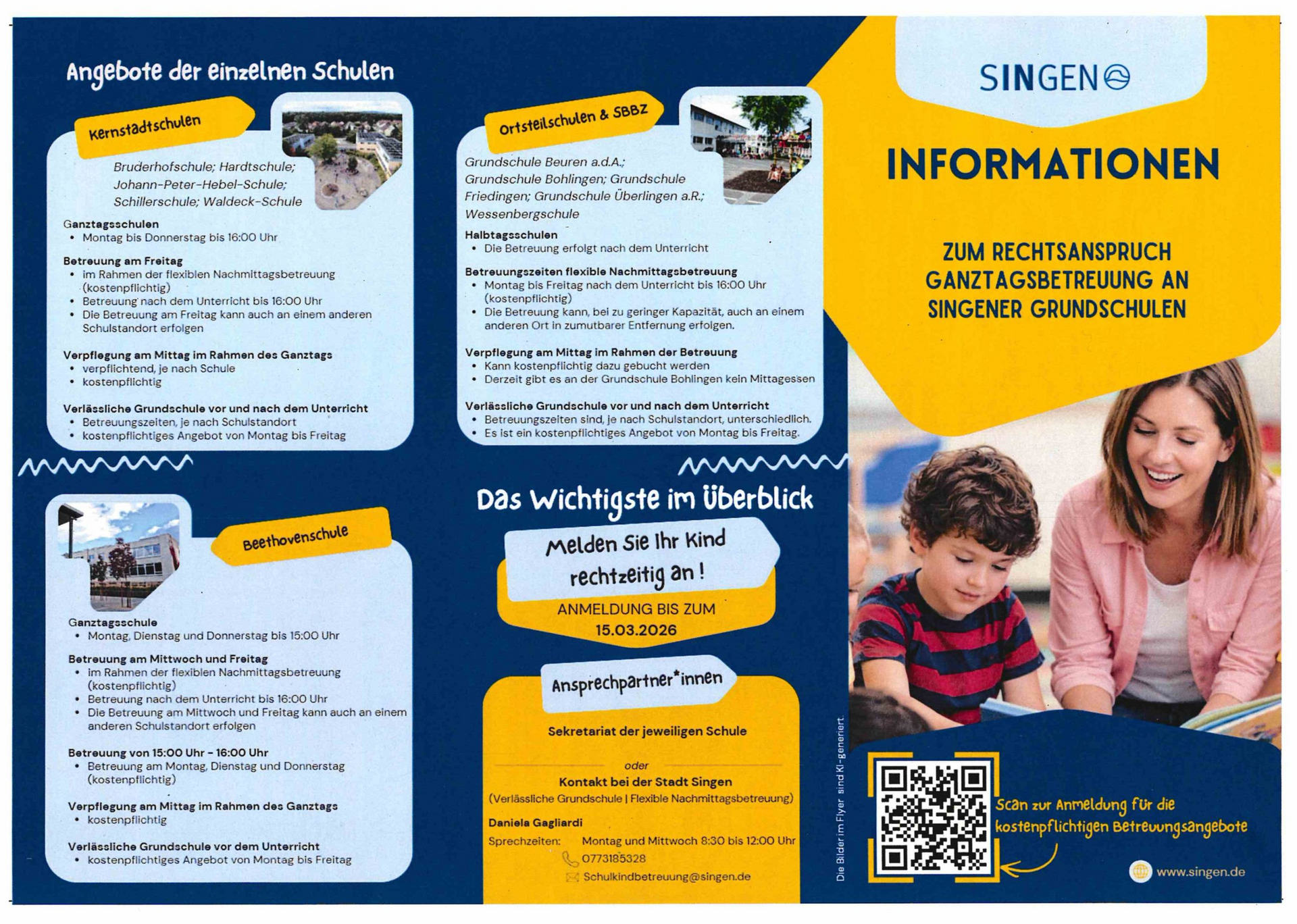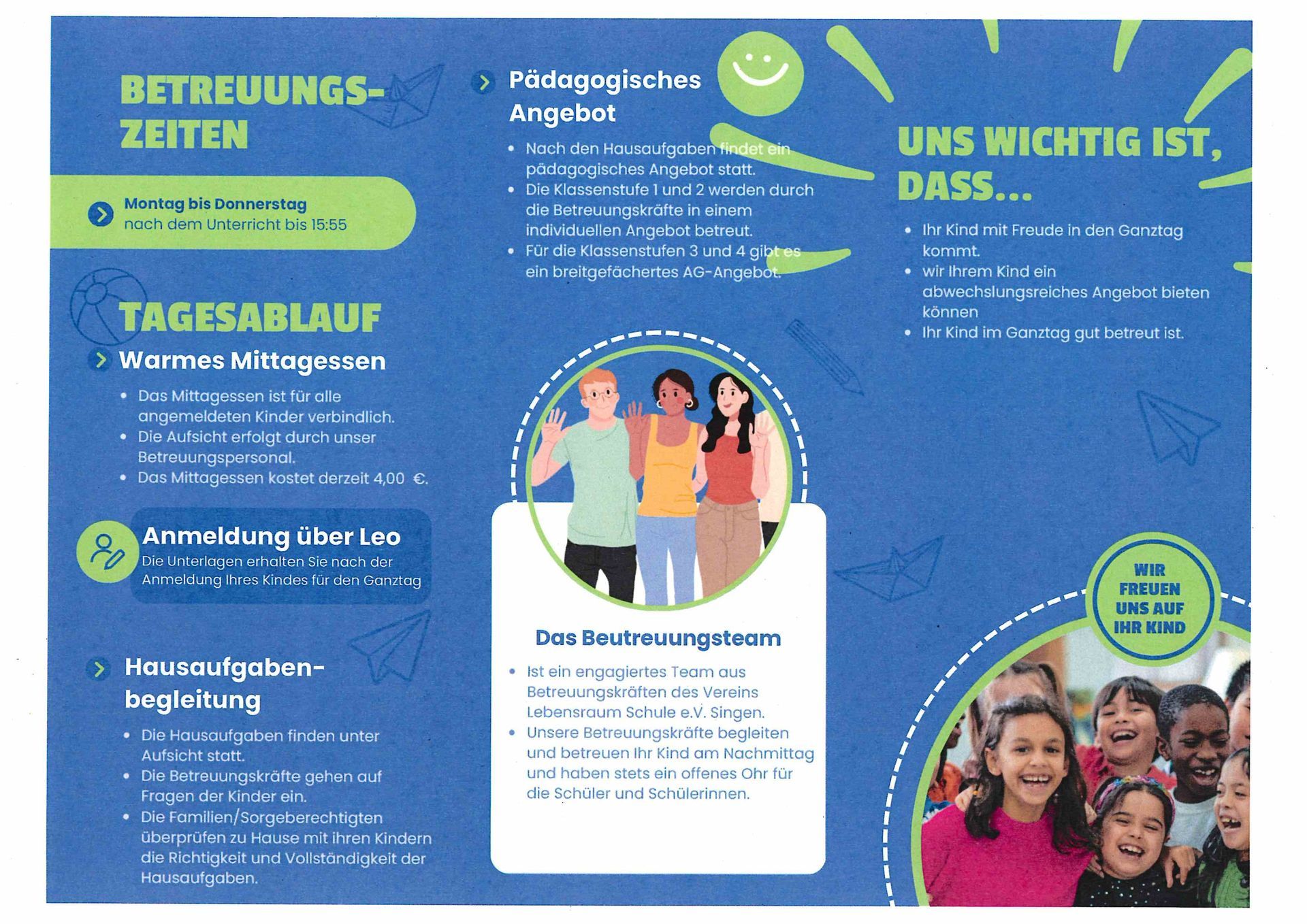 Bitte schauen Sie sich auch den aktuellen Flyer der Stadt Singen bezüglich der Ganztagsbetreuung unter der Rubrik "Ganztag an der Schillerschule" an.