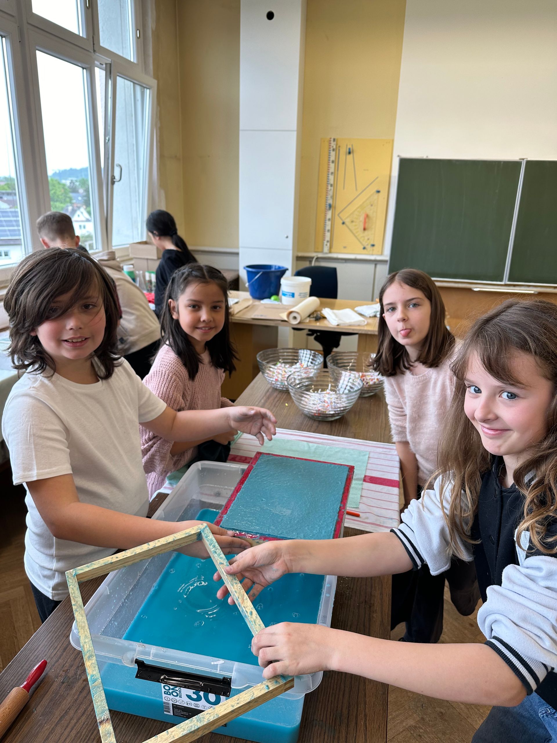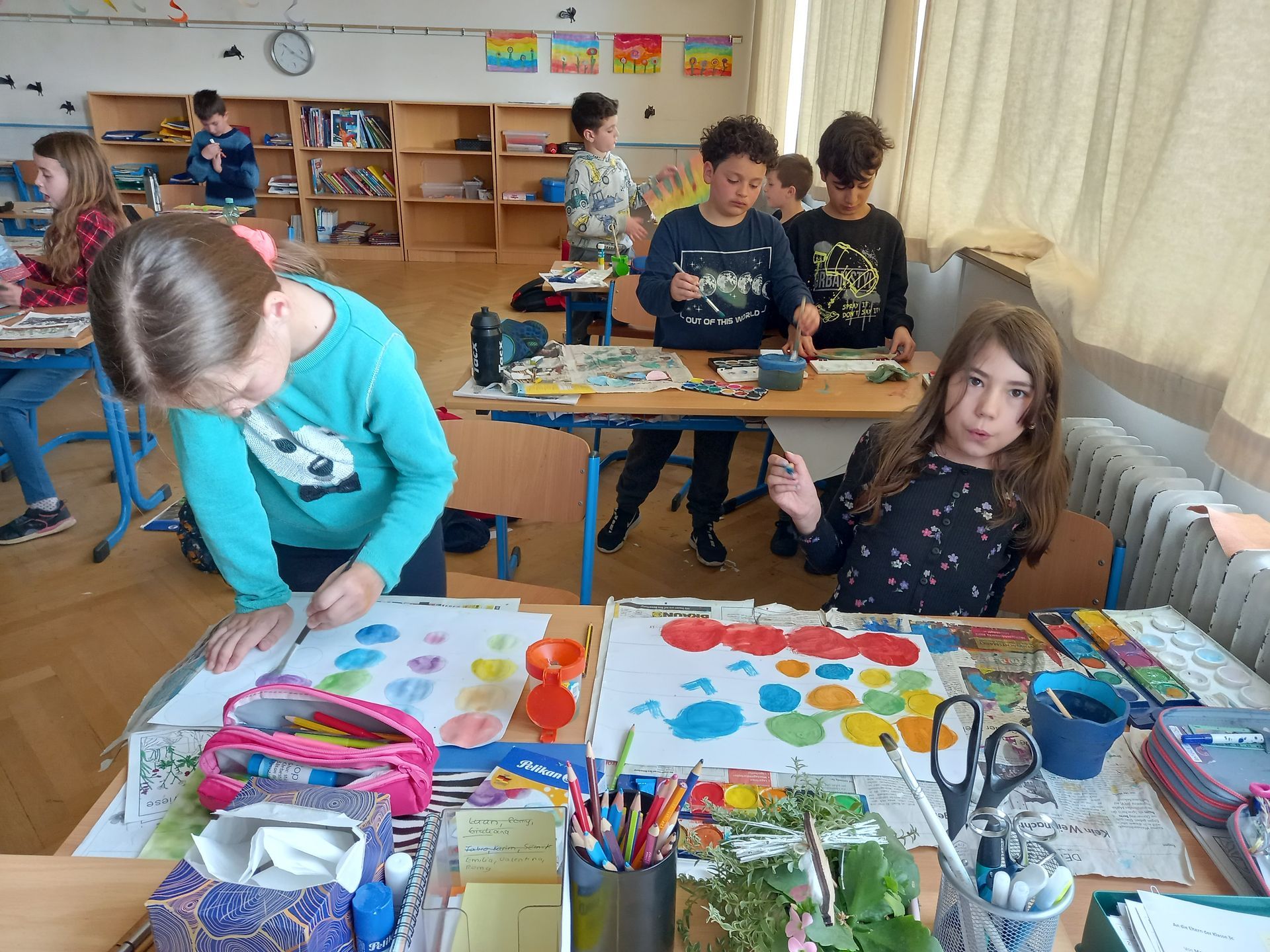 Abgerundet wurde das Projekt mit einem Besuch des Kunstmuseums Singen, bei denen die Kinder bunte Tiere mit Eitempera gestalten durften, angelehnt an Franz Marc und Paul Klee.