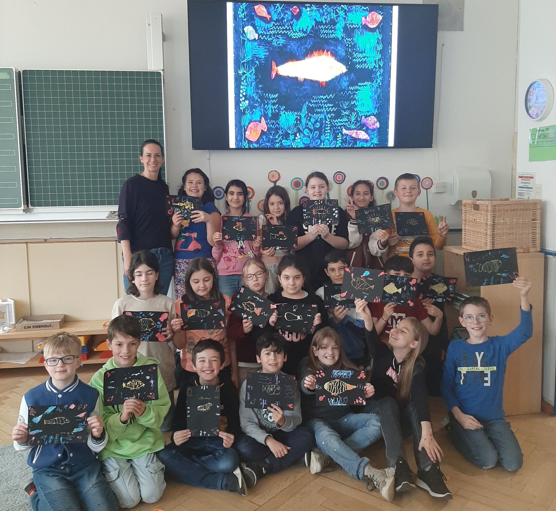 Die Schüler/innen erstellten außerdem ihr eigenes Kratzbild nach Paul Klees Vorlage "Der Goldfisch".