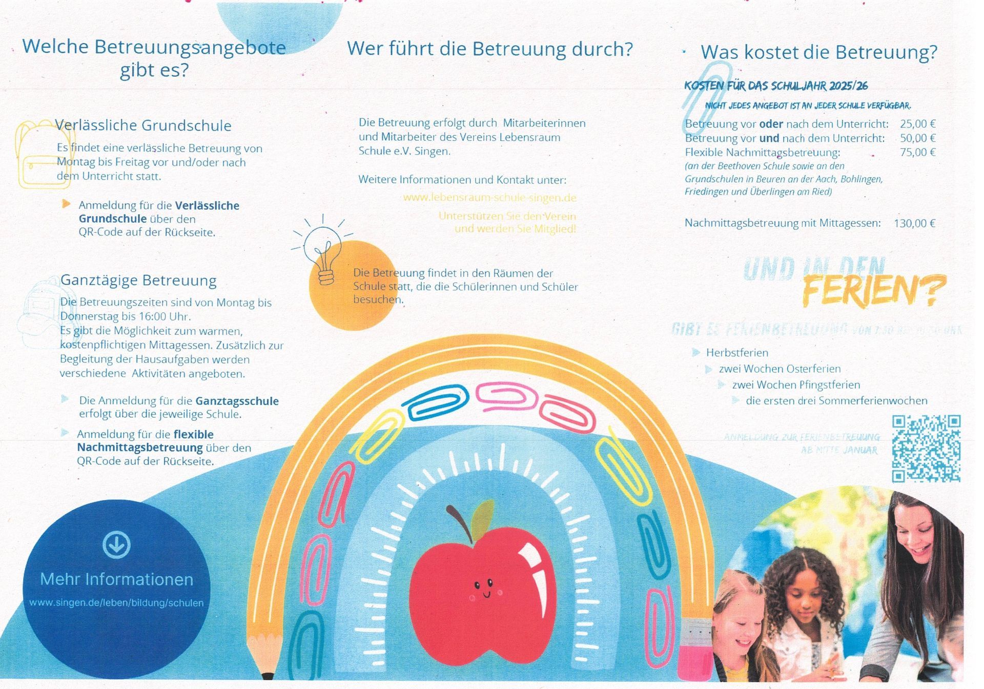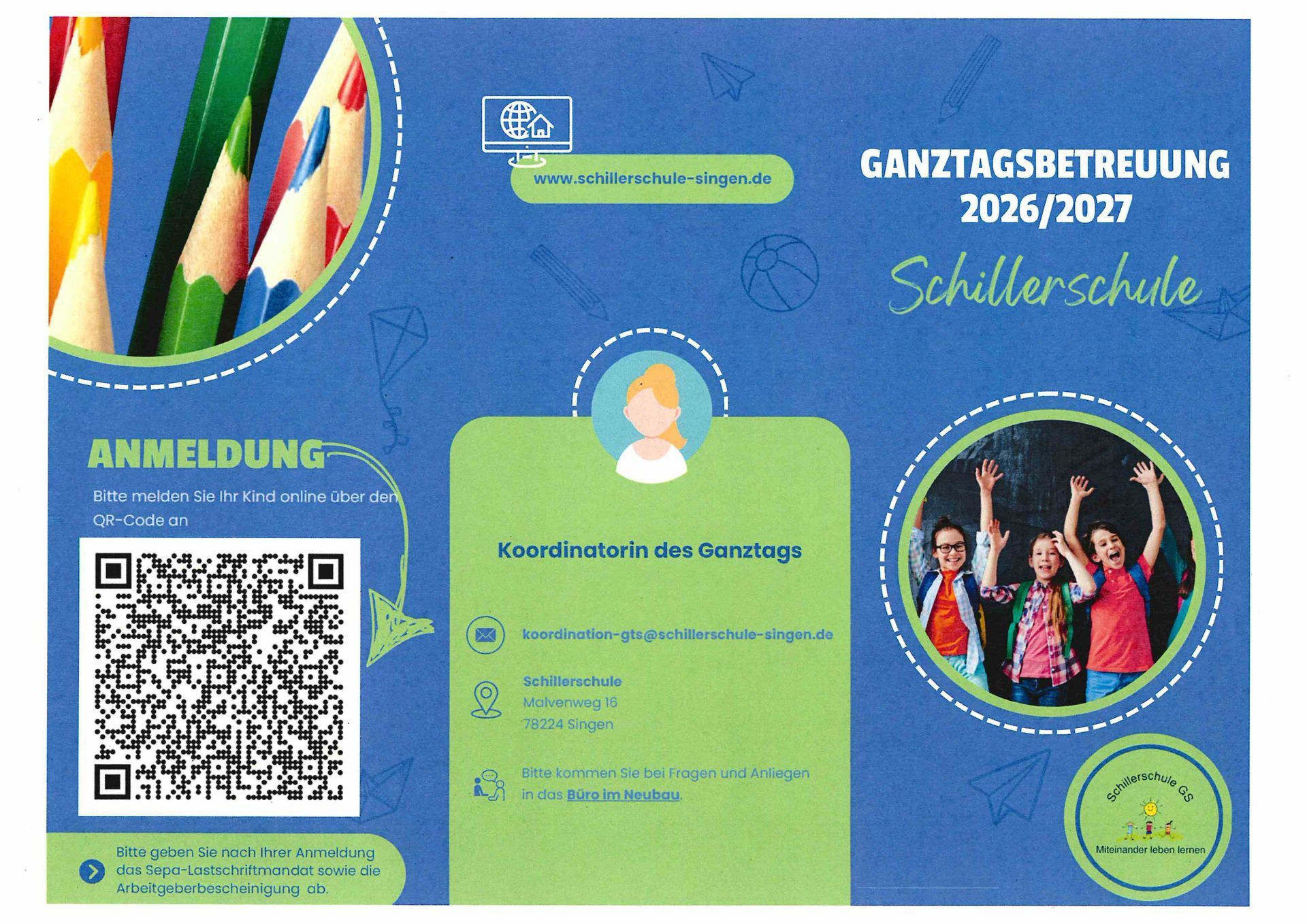 Bitte schauen Sie sich auch den aktuellen Flyer der Stadt Singen bezüglich der Ganztagsbetreuung unter der Rubrik "Ganztag an der Schillerschule" an.