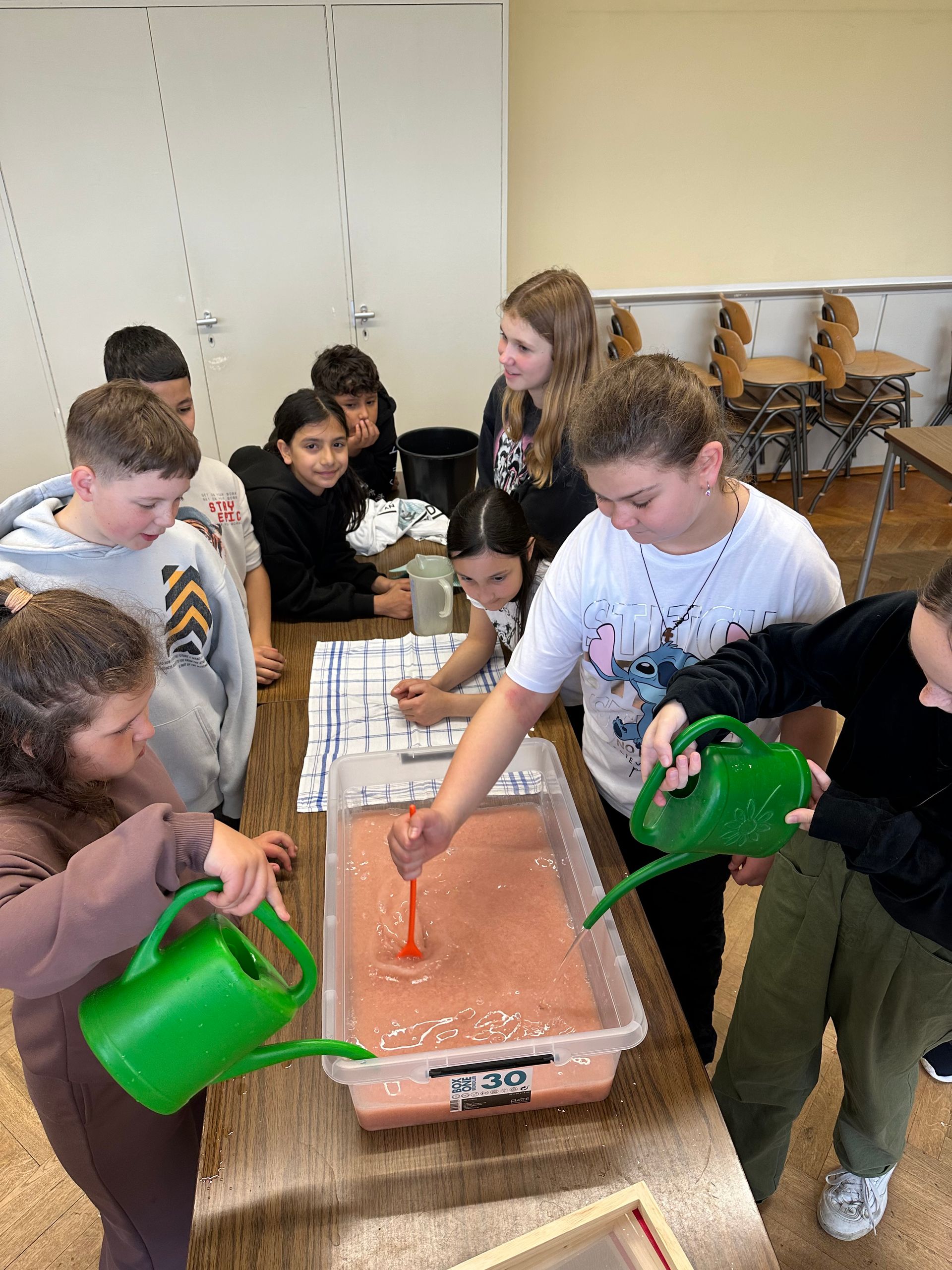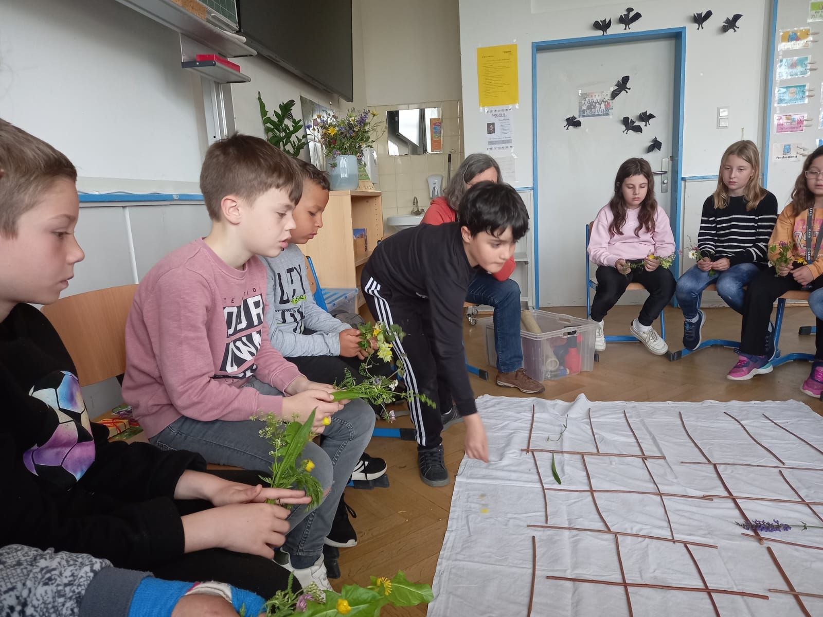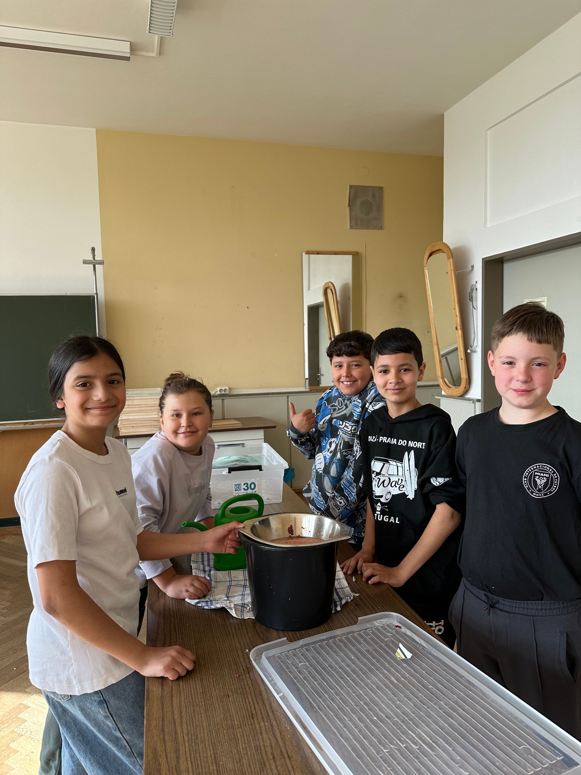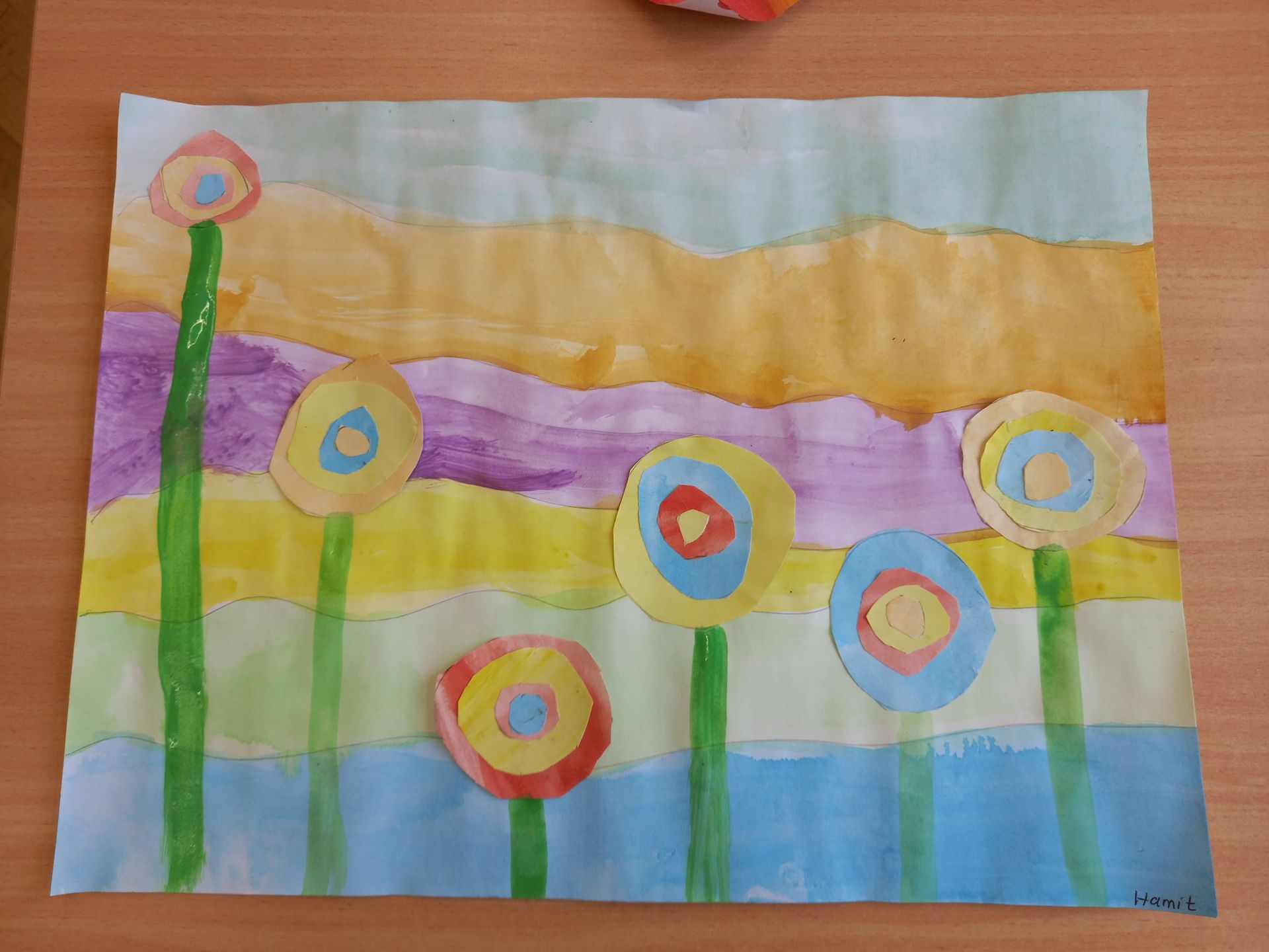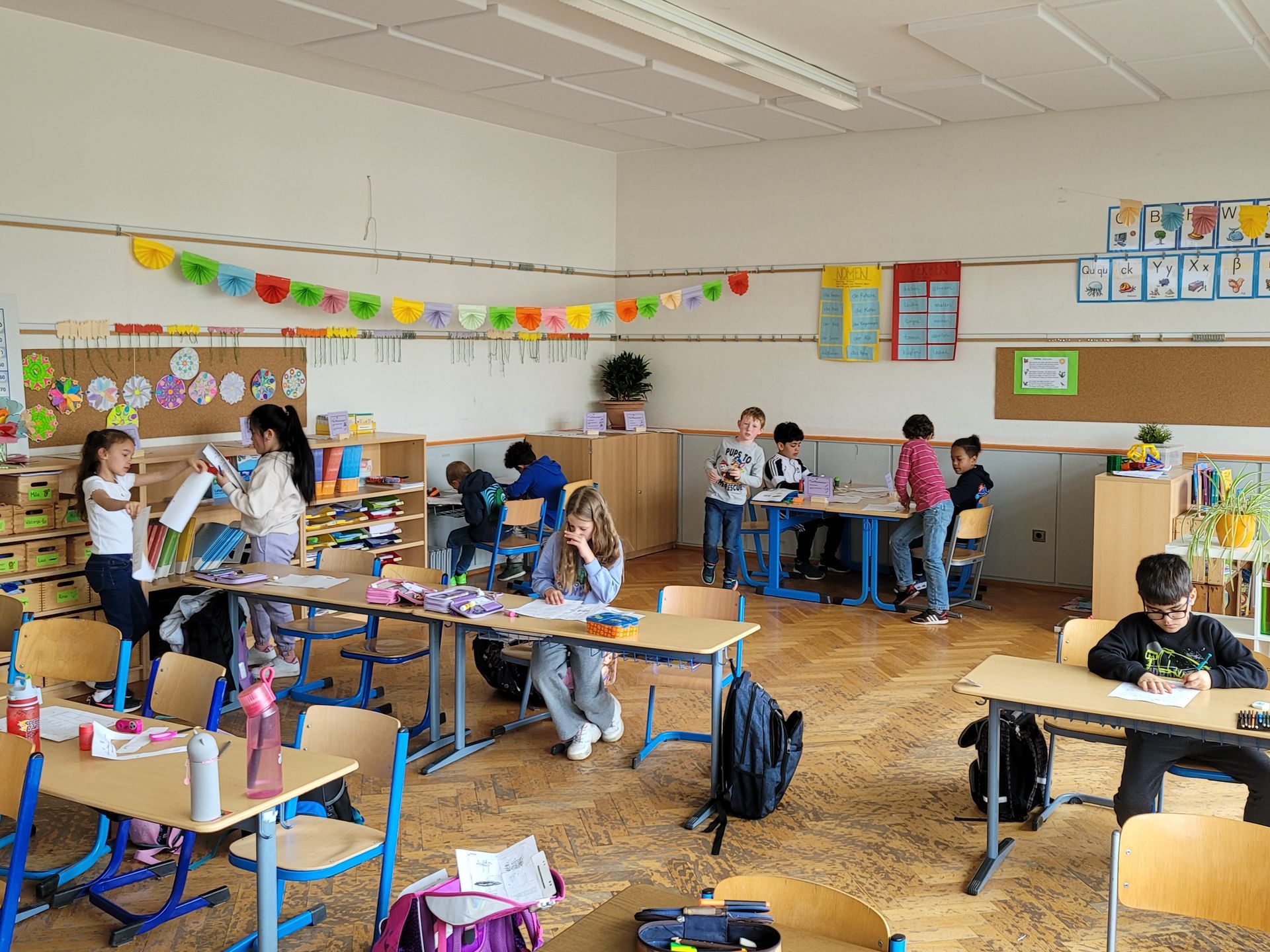 3a - Die Klasse 3a widmete ihre Projekttage der Kunst und begab sich drei Tage lang "Auf die Spuren der Blauen Reiter". Die Schüler/innen lernten zwei Mitglieder der Künstlergruppe "Blaue Reiter" kennen: Franz Marc und Paul Klee. In Gruppen erarbeiten sie Merkmale des Expressionismus und Infos zu den beiden Künstlern. Die Kinder fanden schnell heraus, dass sie durch verschiedene Farben Gefühle in Bildern ausdrücken können. Das versuchten wir natürlich direkt selbst! So entstand unser Gefühle-Bild.
