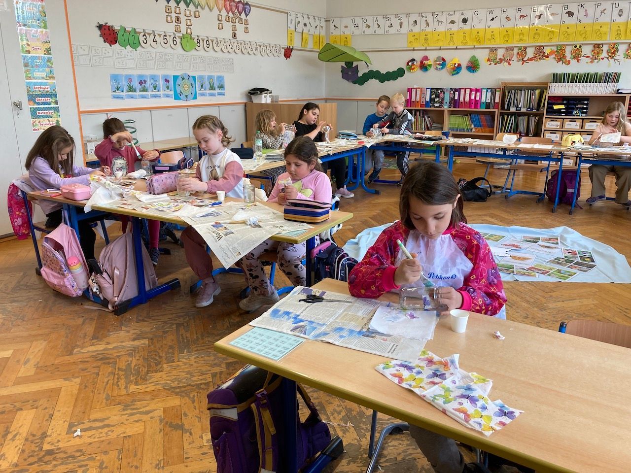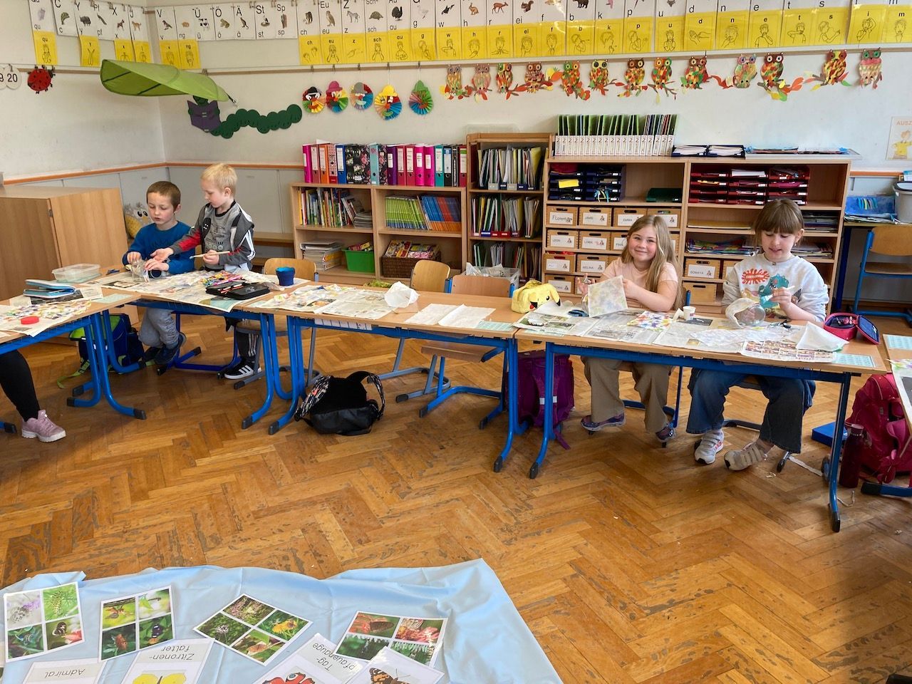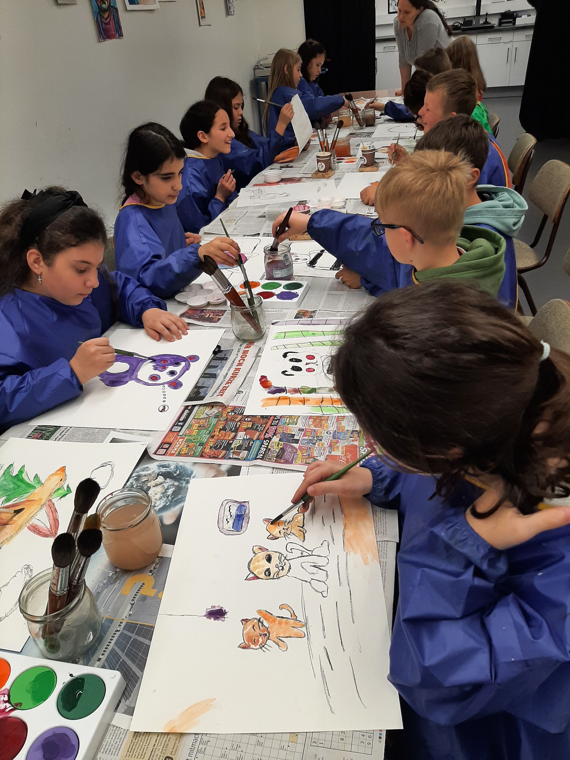 Abgerundet wurde das Projekt mit einem Besuch des Kunstmuseums Singen, bei denen die Kinder bunte Tiere mit Eitempera gestalten durften, angelehnt an Franz Marc und Paul Klee.