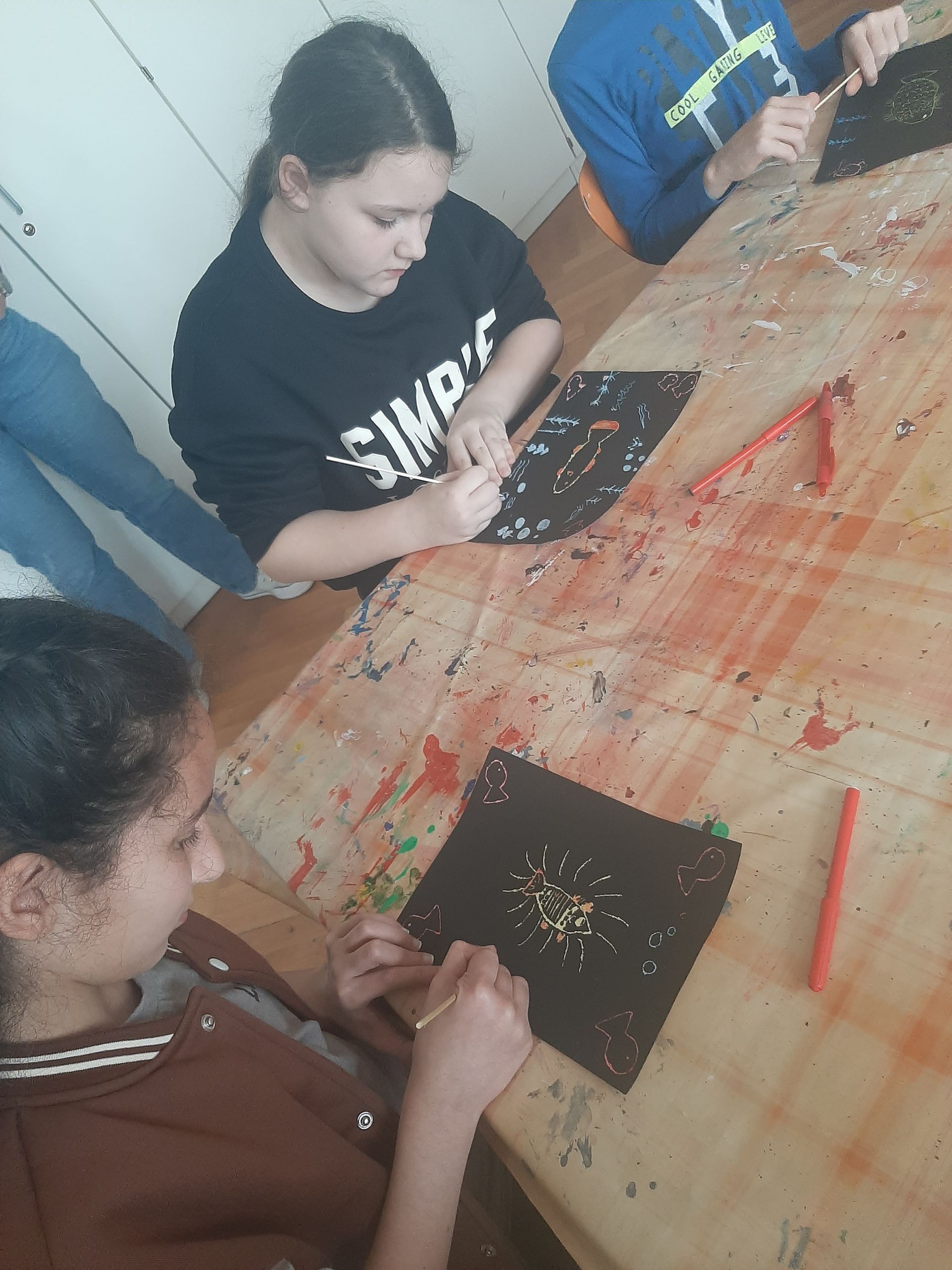 Die Schüler/innen erstellten außerdem ihr eigenes Kratzbild nach Paul Klees Vorlage "Der Goldfisch".