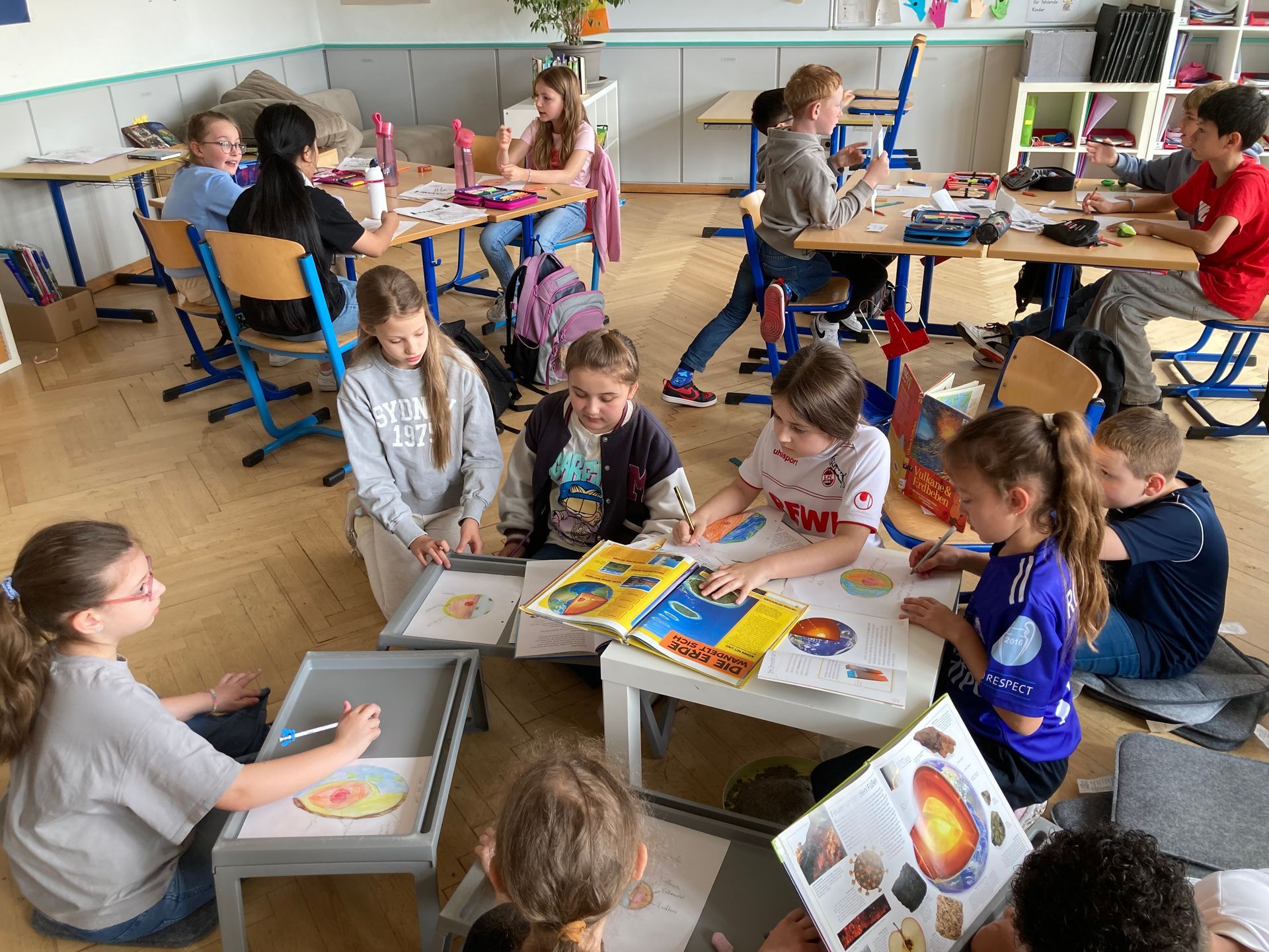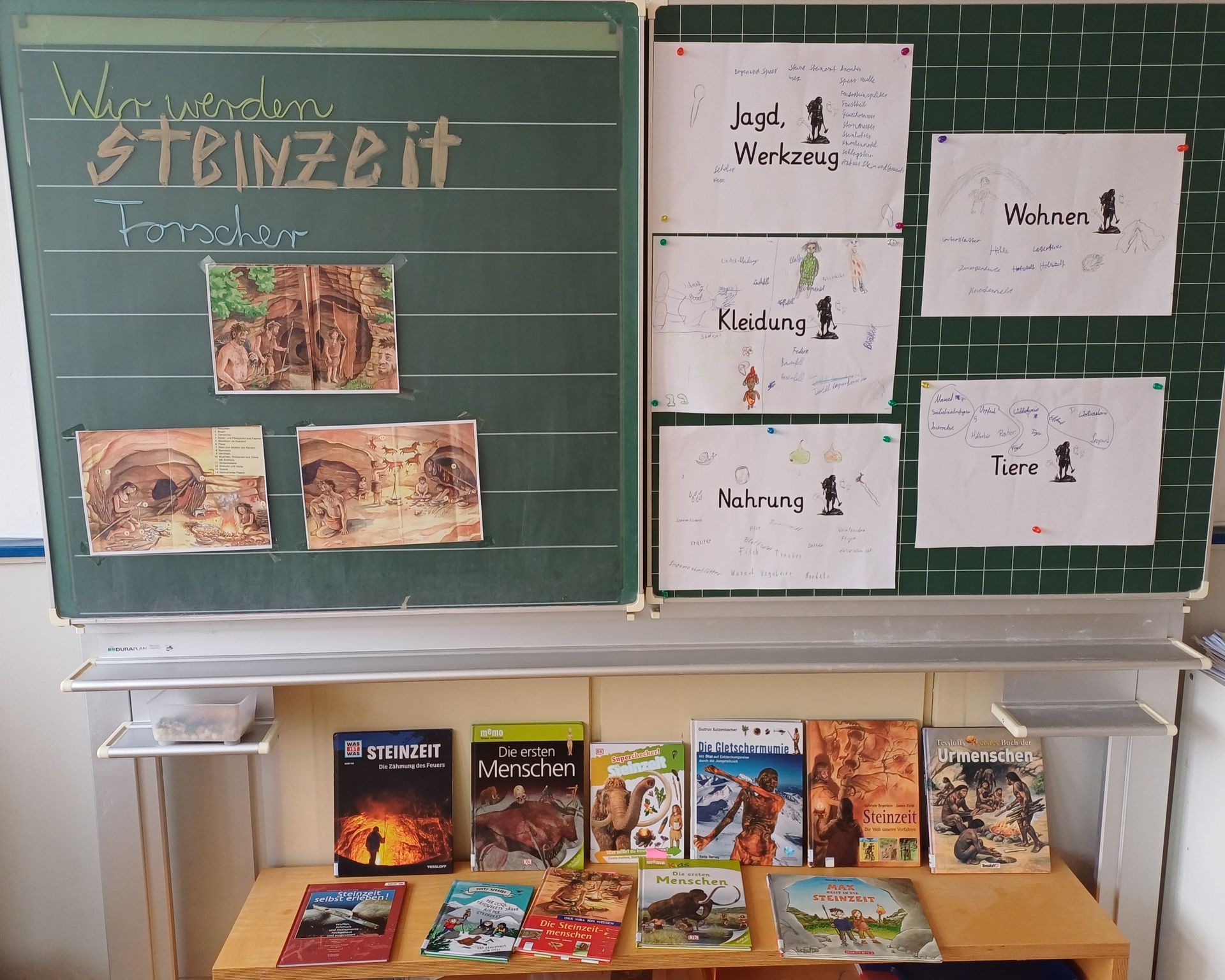 Die Klasse 4a hatte in der Projektwoche das Thema Altsteinzeit. Wir erforschten, wie die Steinzeitmenschen lebten, wie sie sich ernährten, wie sie wohnten, wie sie jagten und welche Tiere es damals gab.
