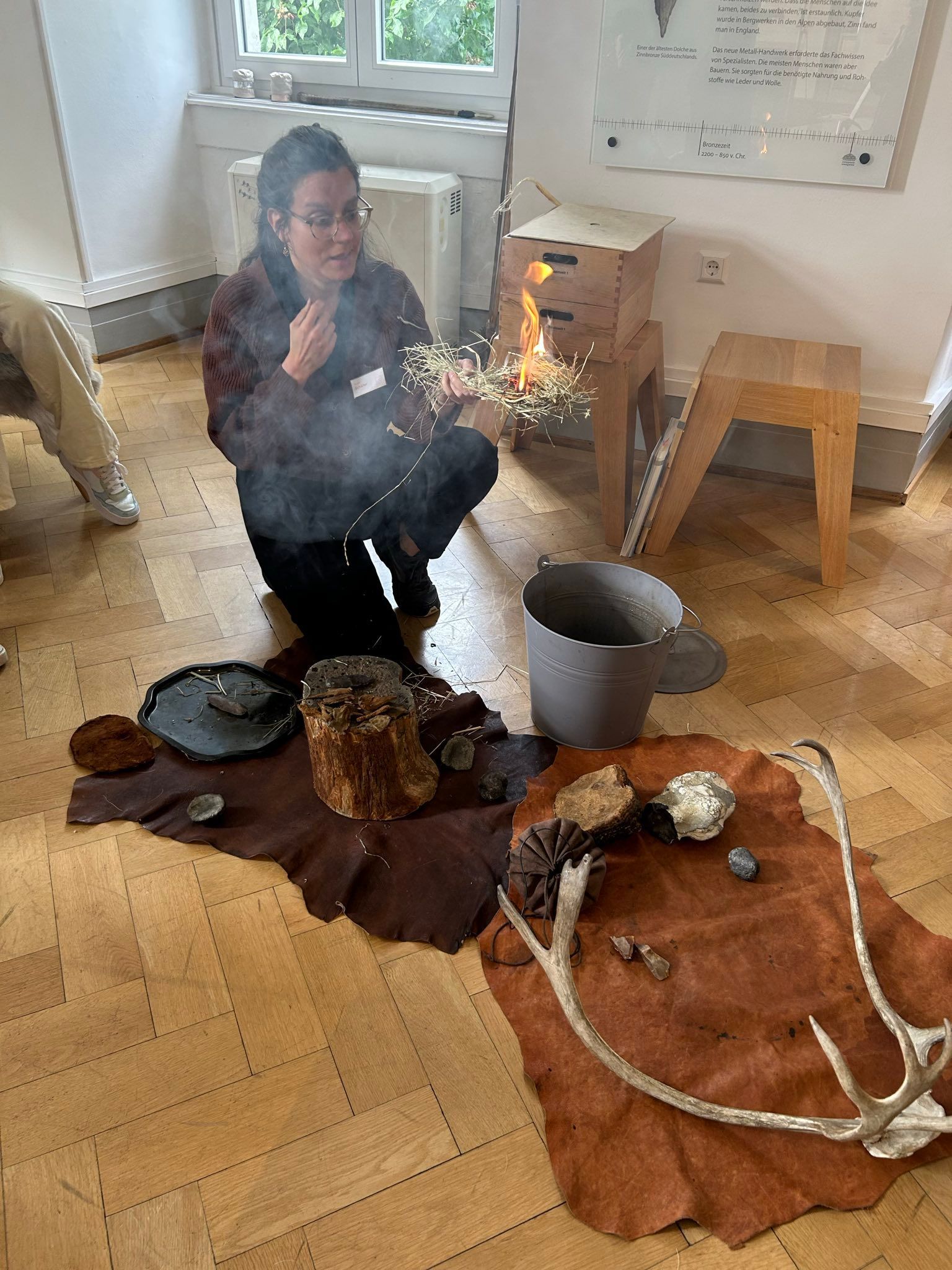 Der Höhepunkt stellte unser Besuch im Archäologischen Museum in Singen dar, wo wir mit Feuersteinen Funken schlagen durften und unser eigenes Knochenamulett herstellten