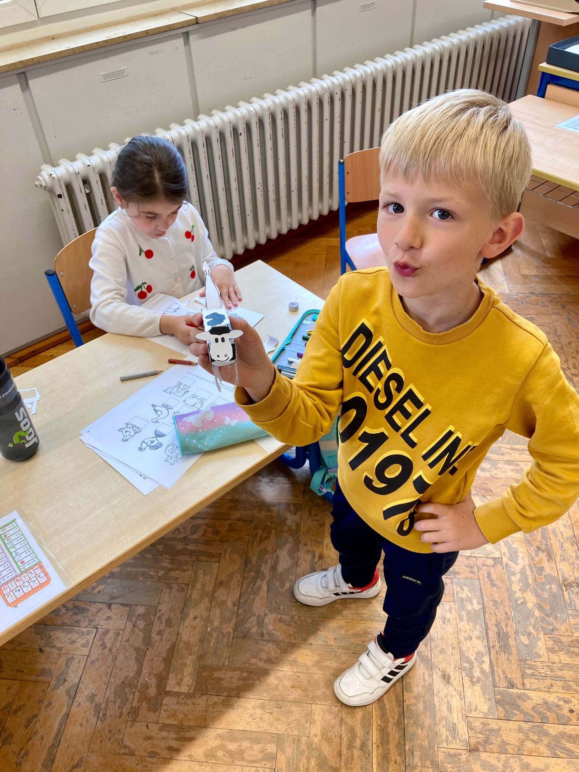 Ebenso beschäftigten wir uns mit der Kunst in der Altsteinzeit und fertigen selber Höhlenmalerei- Kunstwerke an.